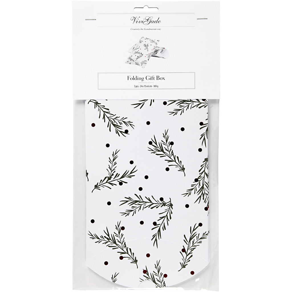 Cadeaudoosjes, tak met kerstballen, afm 18x15x6 cm, 300 gr, groen, rood metallic, wit, 3 stuk/ 1 doos [HOB-25357]