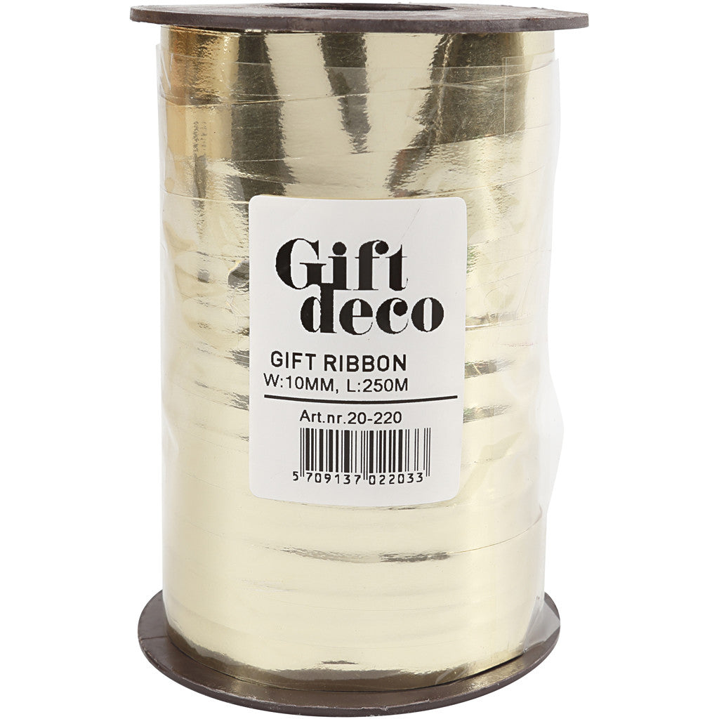 Cadeaulint, B: 10 mm, glossy, goud metallic, 250 m/ 1 rol [HOB-20220]