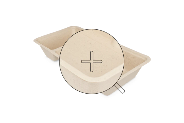 Deze bakjes zijn volledig plastic vrij en hierdoor ook milieuvriendelijk. Deze bakjes zijn met het formaat van 8,5x3x16 cm geschikt voor kleinere porties friet, of snacks. Het bakje is voorzien van een apart sausvakje waardoor je de saus appart van het gerecht kan severen.