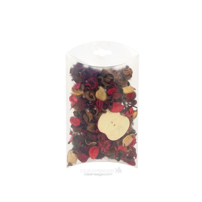 De unieke frosted kussen vorm laat uw product echt opvallen. Deze gondeldoosjes hebben een optionele hangstrip. Bruikbare ruimte (lengte in midden) is 15,2cm.