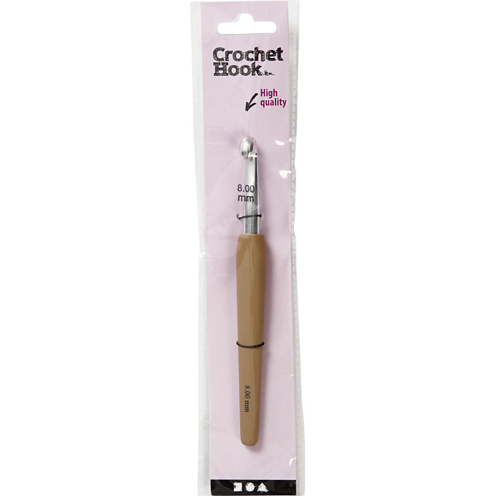 Haaknaalden, afm 8, L: 14,5 cm, afm 8 mm, bruin, 1 stuk [HOB-42387]