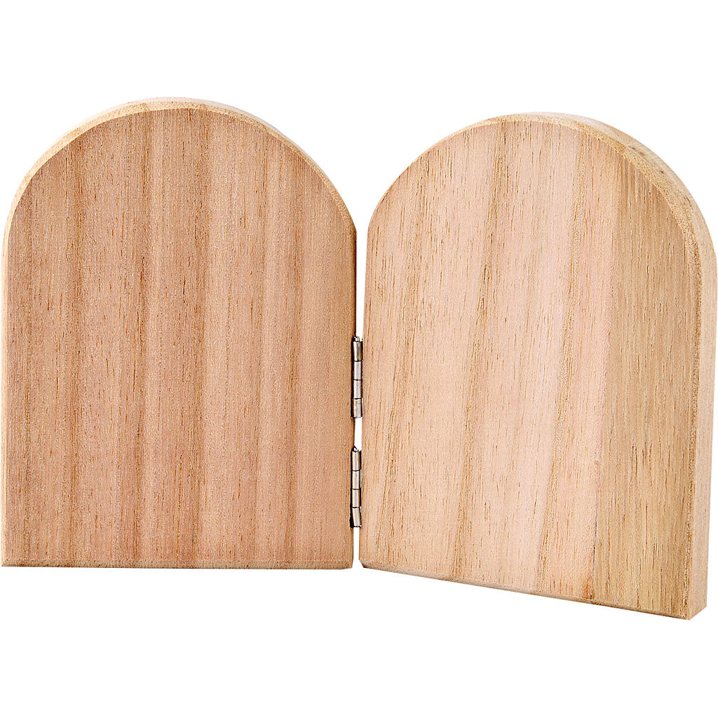 Tweeluik ikoon van hout met metalen scharnieren Tweeluik ikoon van hout met metalen ophangogen.