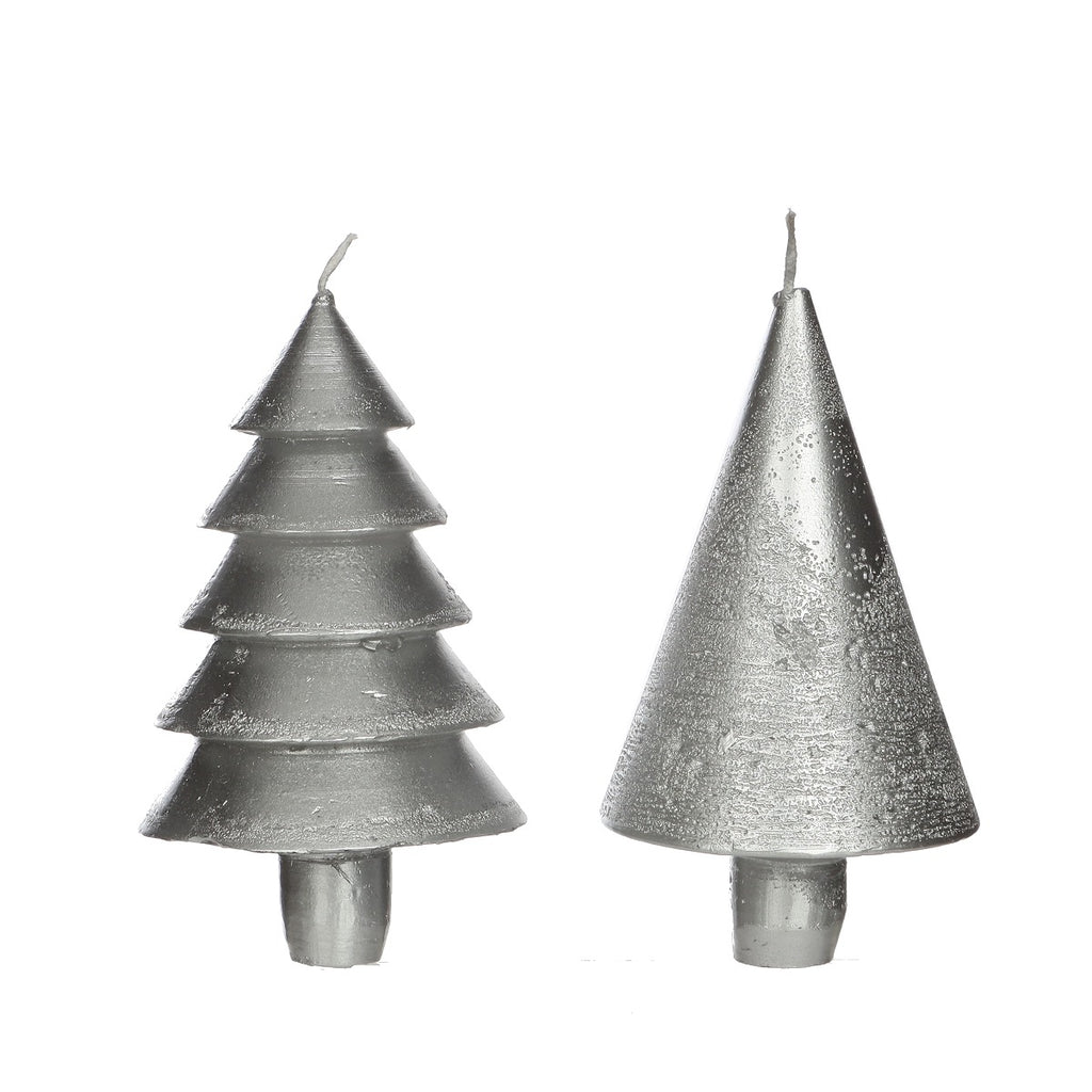 Kaarsenset 2 soorten boompjes zilver (1 set, 6pcs) [IFS-32156]