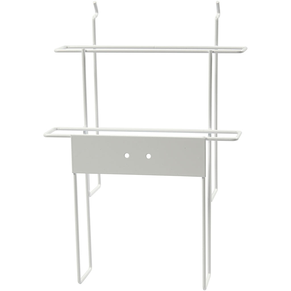 Witte, metalen papiermodule met 2 verticale planken en een frontplaat - past bij Focus Display systeem.