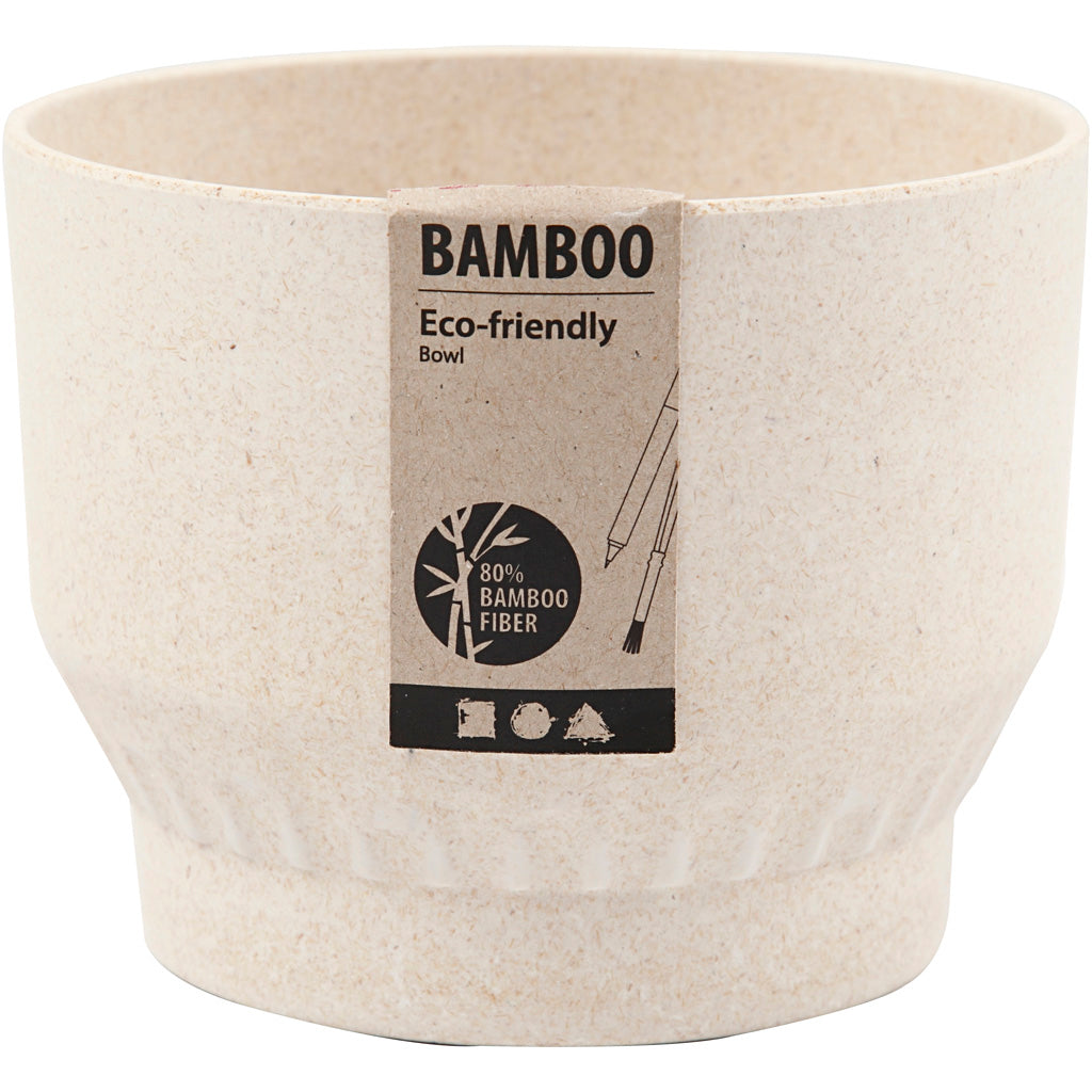 Schaal met geplooid patroon gemaakt van bamboevezels Bamboevezel met 20% polymeer (bindmiddel) is een milieuvriendelijk product dat gemakkelijk kan worden gedecoreerd met Plus Color acrylverf, porseleinstiften, enz.