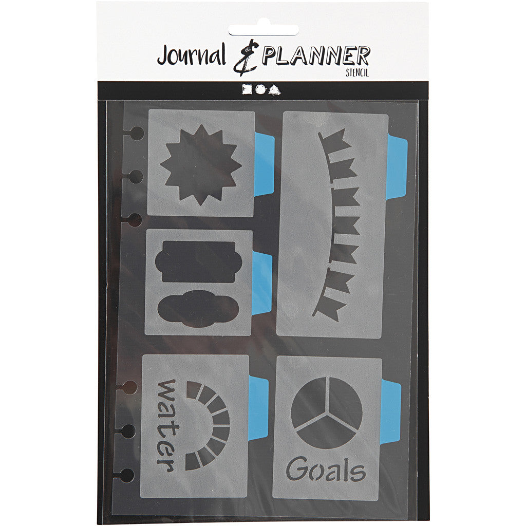 Zelfklevend, niet-permanente plastic sjabloon met verschillende vormen en ontwerpen geschikt voor bulletjournals. Wordt geleverd op acrylplaten met gaten die erin kunnen worden gestoken en passen in de planner artikelnr. 192648-651. Was na gebruik met lauwwarm water.